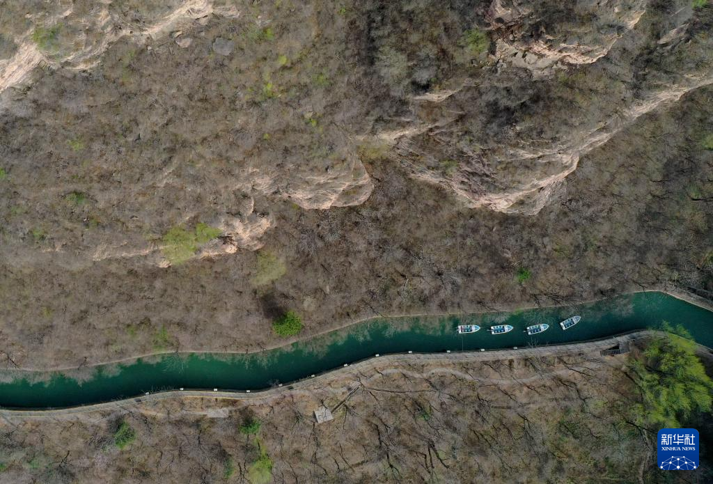 这是3月25日在河南省林州市红旗渠青年洞附近拍摄的红旗渠总干渠(无人机照片)。