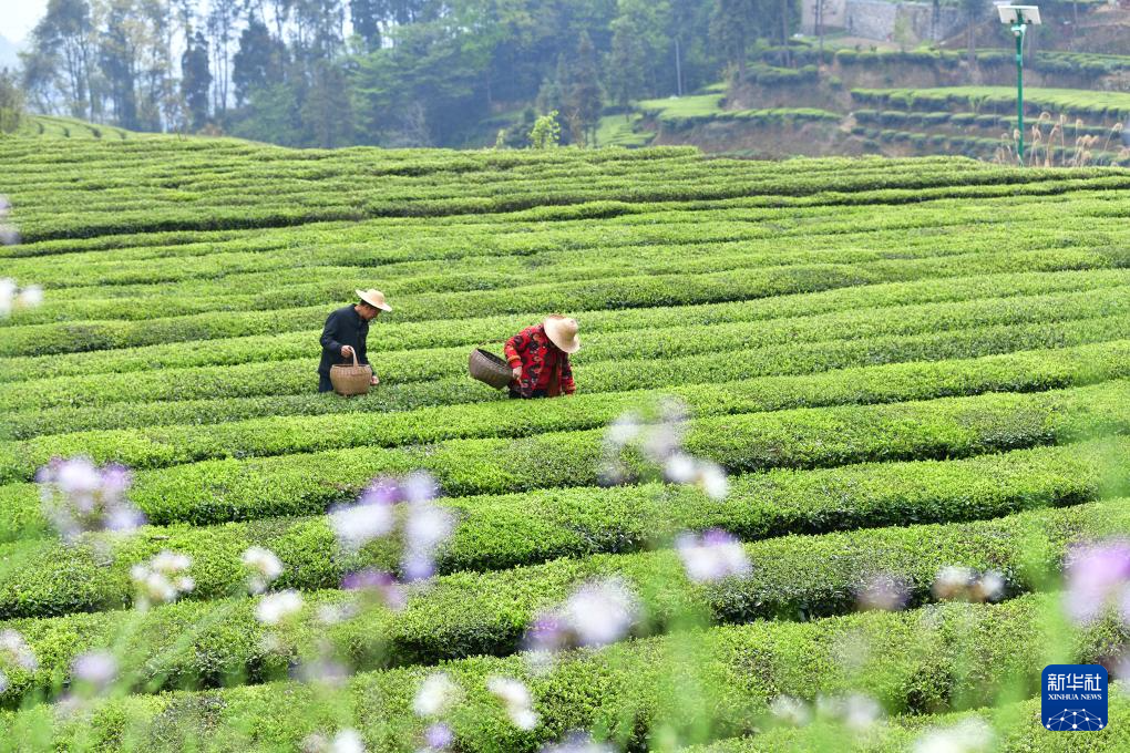 4月4日,茶农在湖北省恩施土家族苗族自治州宣恩县椒园镇一家茶园采茶。