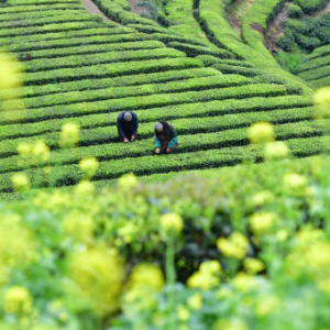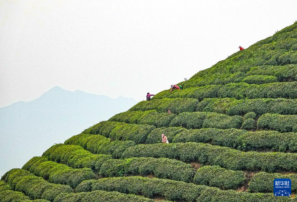 清明时节是春茶采摘旺季,茶农在茶园内忙碌,采制新茶供应市场。