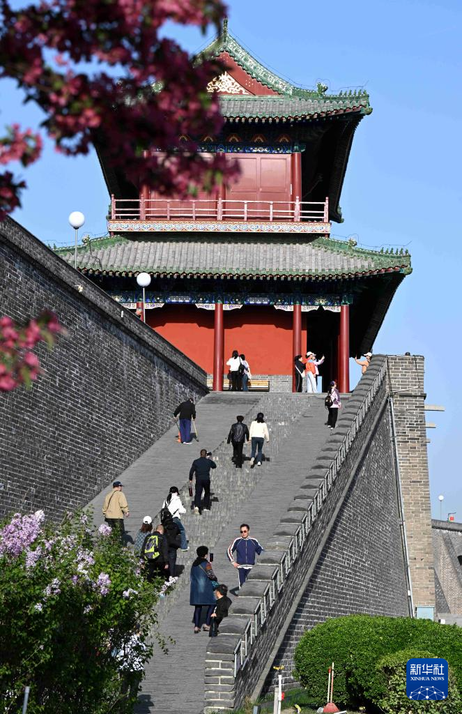 4月6日,游客在河北省石家庄市正定古城游玩。