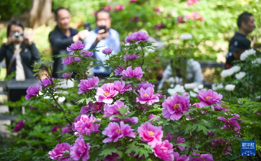 4月6日,游客在河南省洛阳市王城公园欣赏盛开的牡丹花。