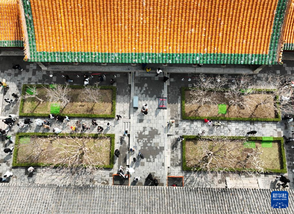 4月6日,游人在沈阳故宫参观游览(无人机拍摄)。