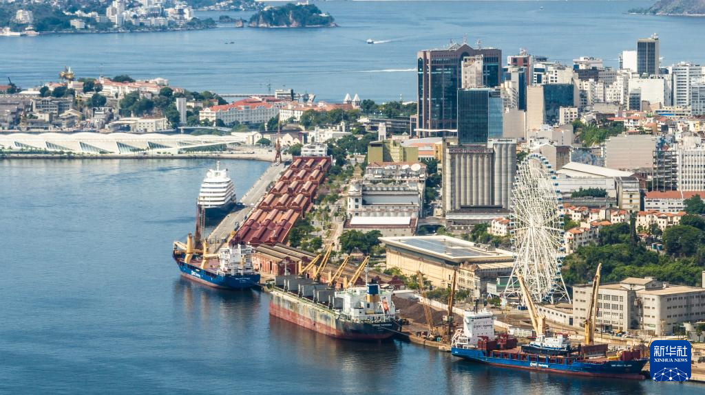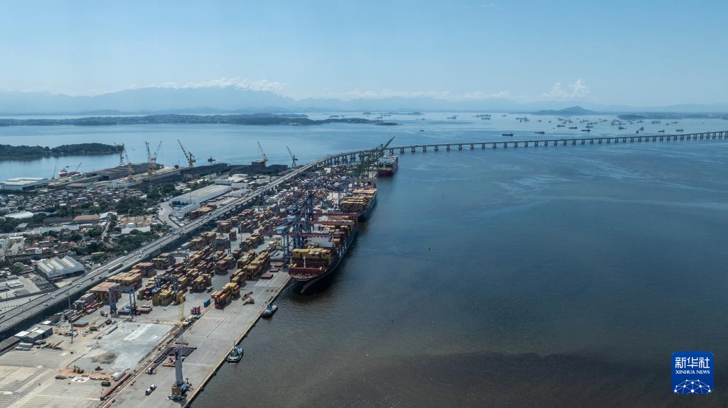 4月3日,集装箱货船停靠在巴西里约热内卢的一处港口。