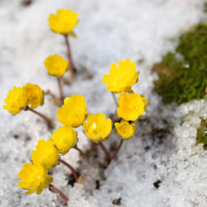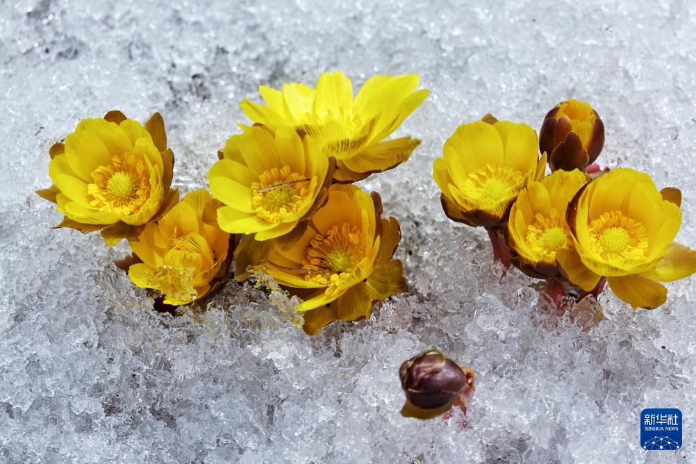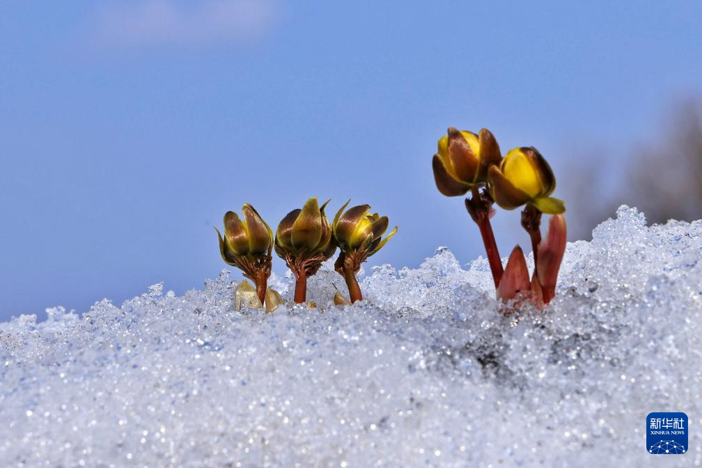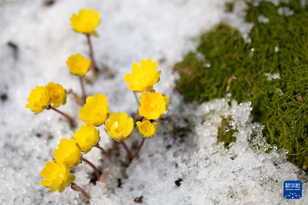 随着气温升高,冰凌花破雪而出,迎春绽放。