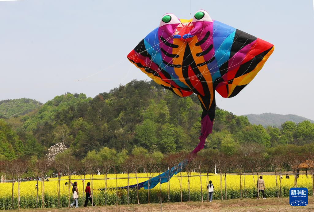 4月5日,游客在浙江省义乌市马畈景区放飞风筝。