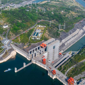 4月8日,在湖北省宜昌市,船舶有序通过三峡枢纽(无人机照片)。
