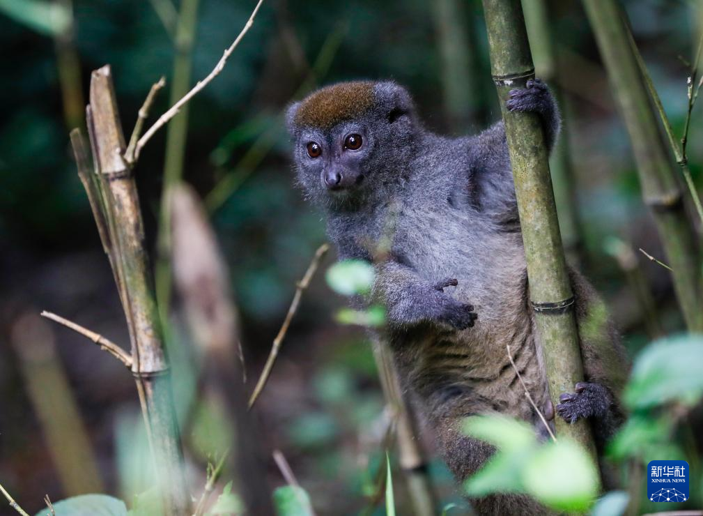 这是3月29日在马达加斯加安达西贝森林公园拍摄的竹狐猴。