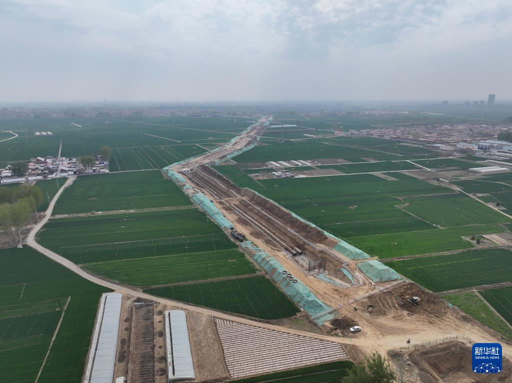 雄安干渠工程二标段建设现场(4月9日摄,无人机照片)。