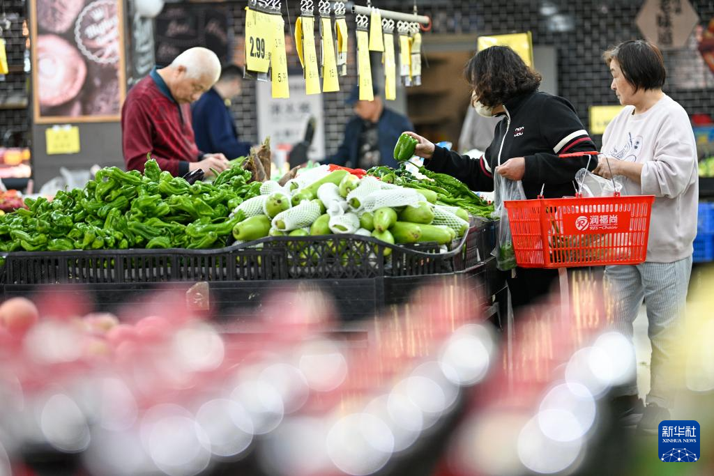 4月10日,消费者在江苏省南京市一家超市选购蔬菜。