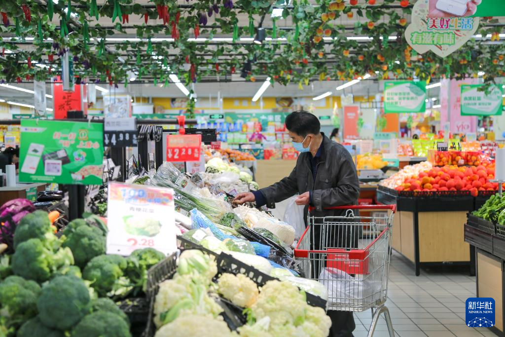 4月10日,消费者在河北省邯郸市一家超市选购蔬菜。
