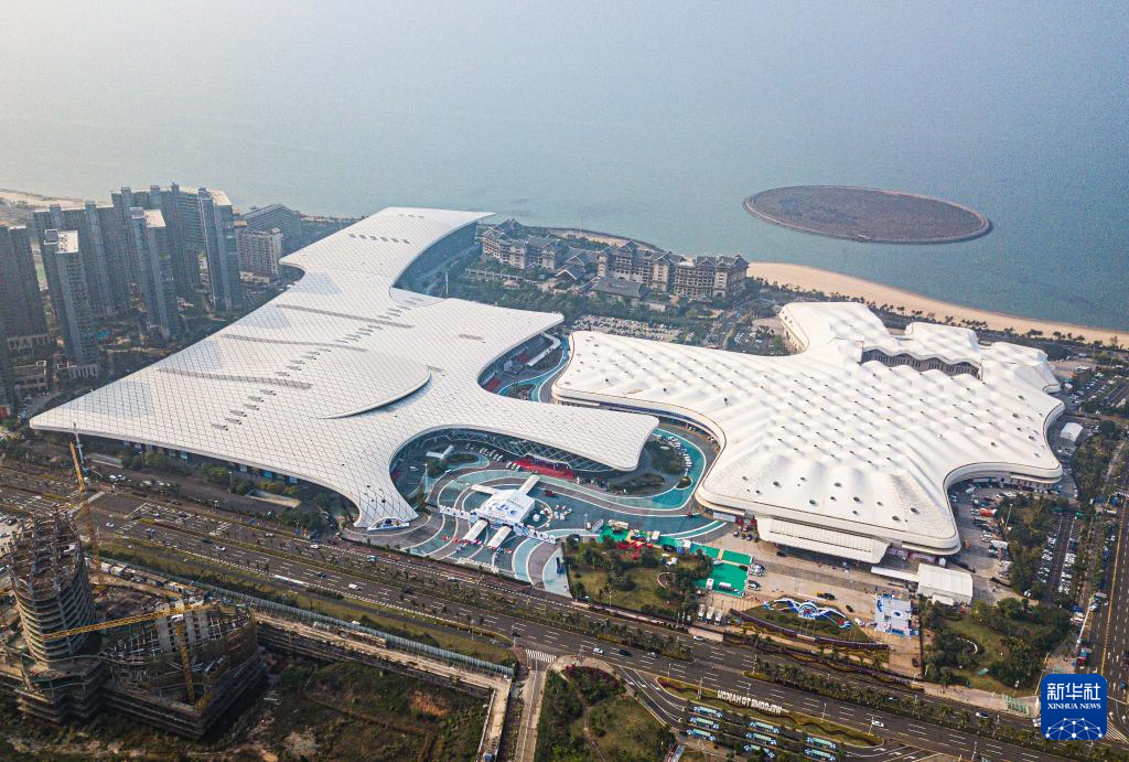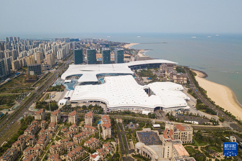 4月10日拍摄的第五届消博会主会场海南国际会展中心(无人机照片)。