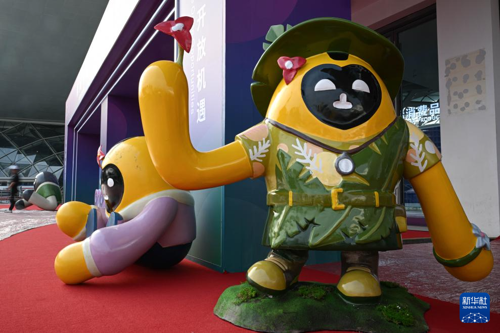4月10日在第五届消博会主会场拍摄的消博会吉祥物。