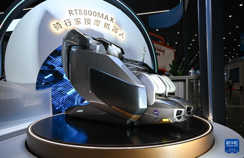 4月10日在第五届消博会主会场拍摄的按摩机器人。