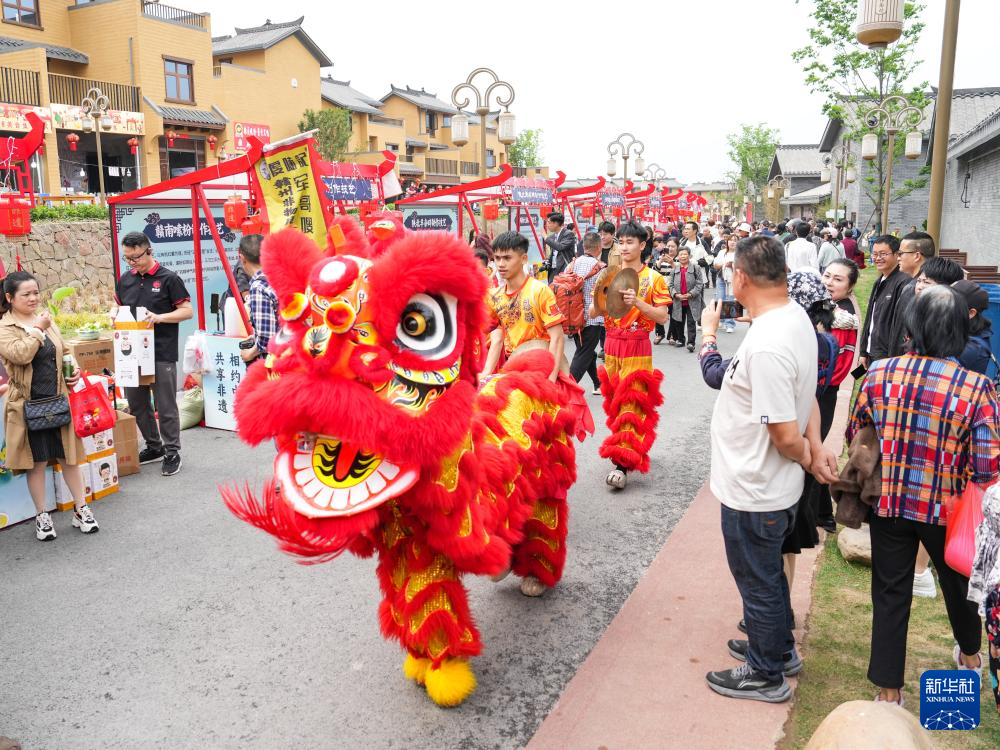 4月11日,在四川省中江县觉慧村非遗大集现场,游客在欣赏非遗代表性项目展演。