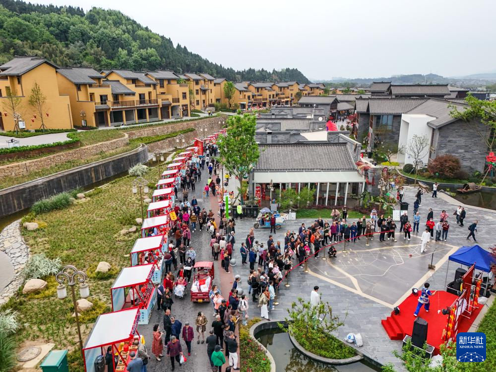 这是4月11日拍摄的四川省中江县觉慧村非遗大集现场(无人机照片)。