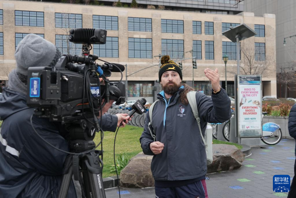 4月10日,在美国纽约,一名现场目击者接受媒体采访。