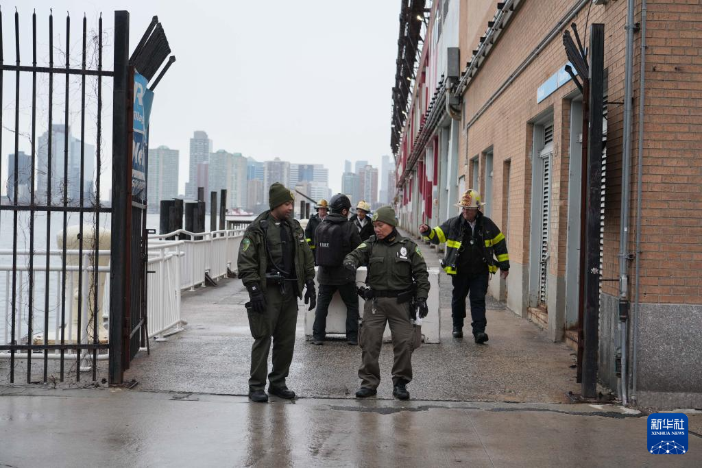 4月10日,应急救援人员在美国纽约市曼哈顿40号码头附近维持秩序。