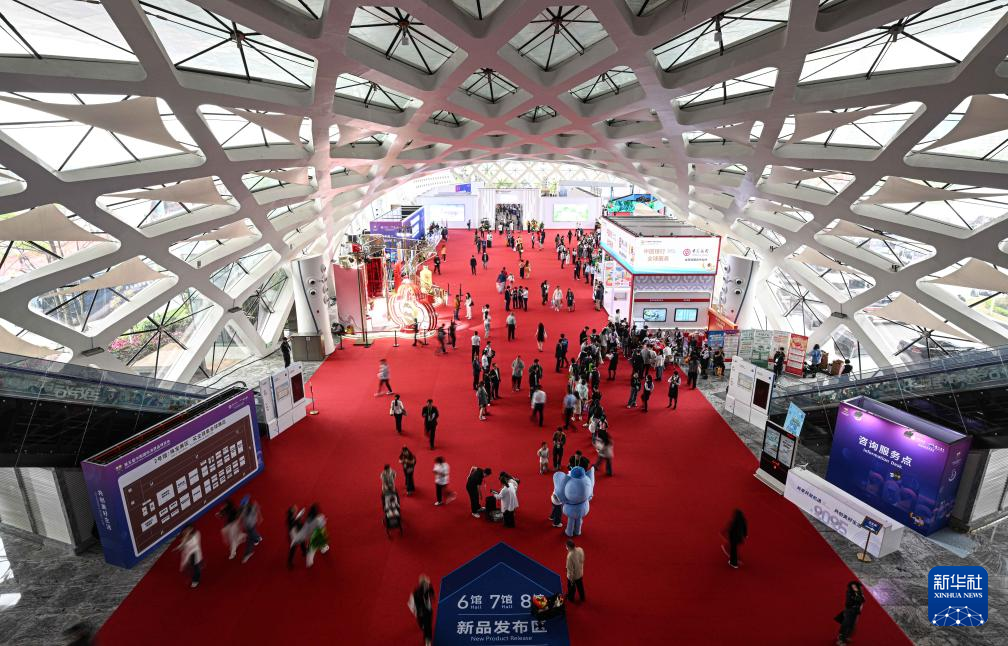 这是第五届中国国际消费品博览会国货特色潮品展区(4月13日摄)。