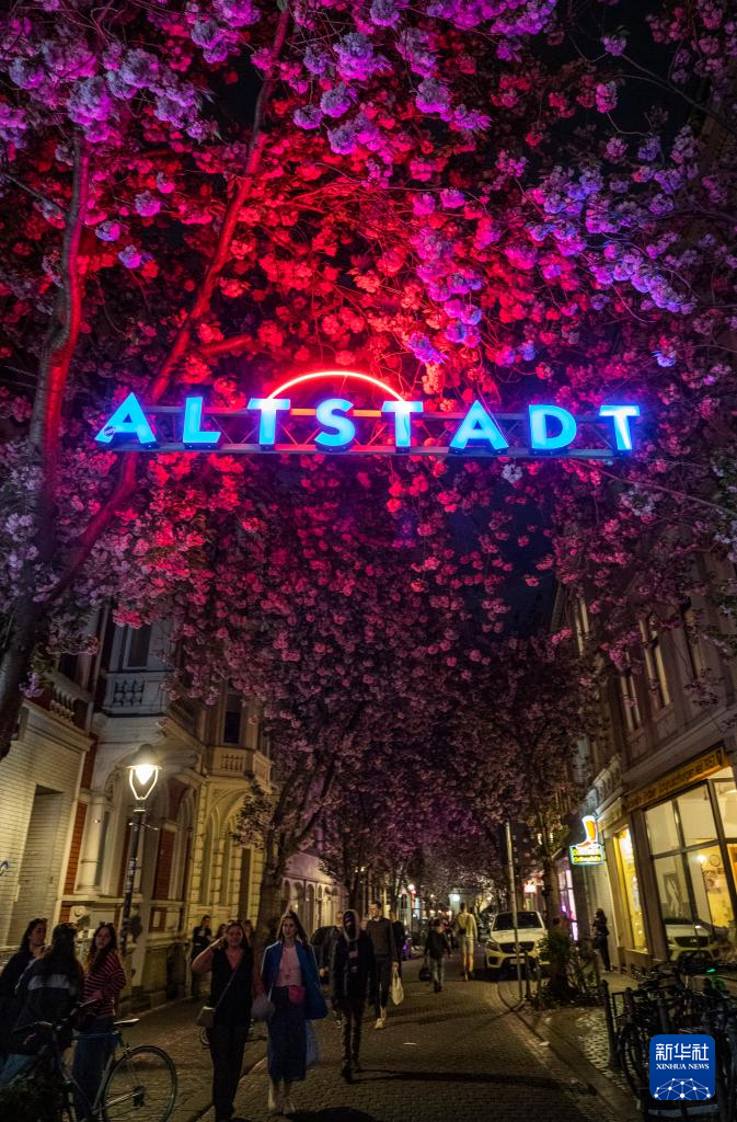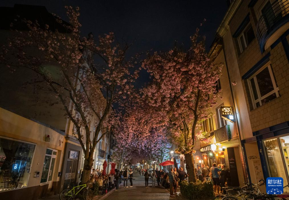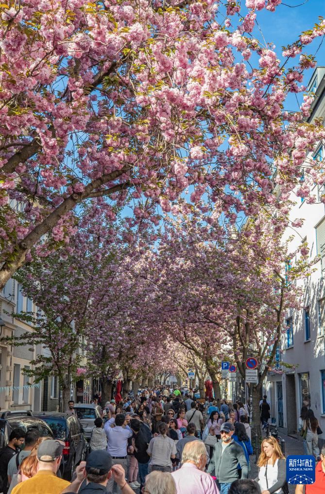 4月12日,人们在德国波恩观赏盛开的樱花。