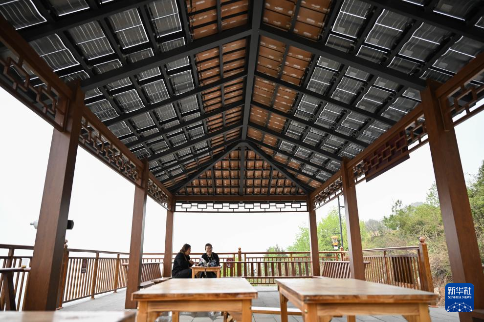 4月12日,游客在土店子村的光伏长廊休闲。