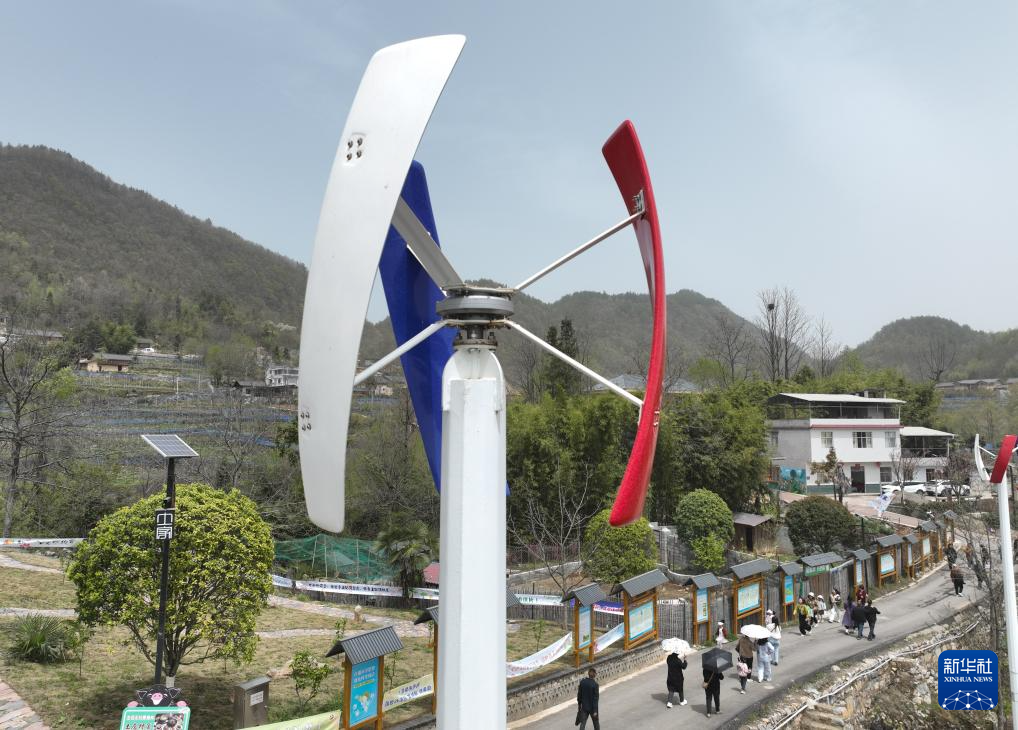 4月10日,国网巴东县供电公司工作人员在土店子村检查微风发电设备。
