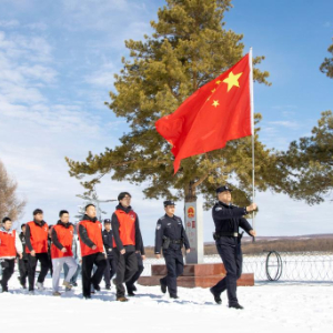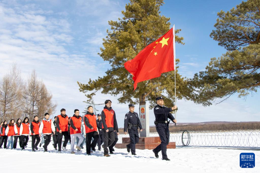 4月14日,在黑龙江省呼玛县,呼玛县团员代表、西部计划志愿者与黑龙江出入境边防检查总站呼玛边境管理大队的青年戍边民警同走戍边路,感受戍边艰辛,提升国家安全意识。