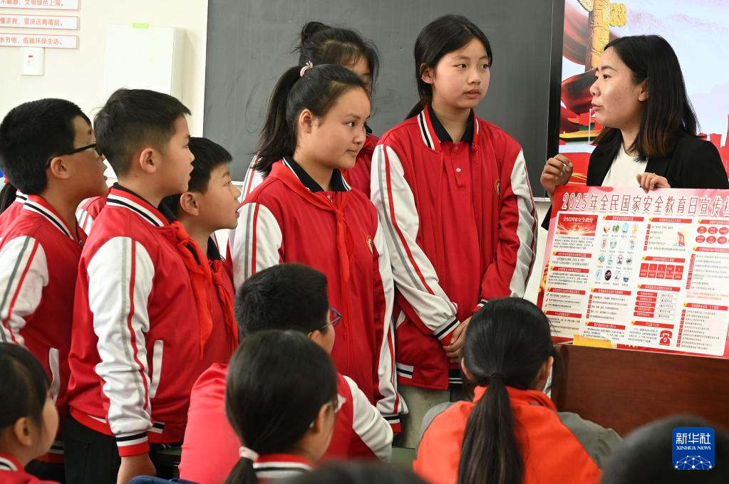 4月14日,在四川省内江市东兴区牛牦山小学,老师为学生讲解国家安全相关知识。