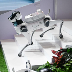 4月13日,宇树科技展示的机器狗在第五届消博会场馆内活动。