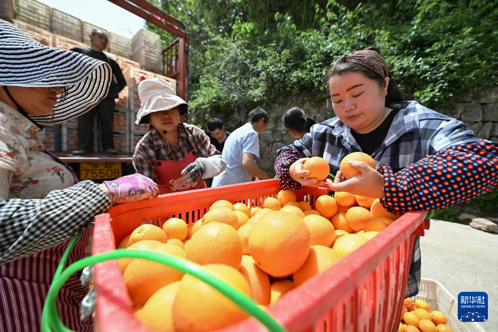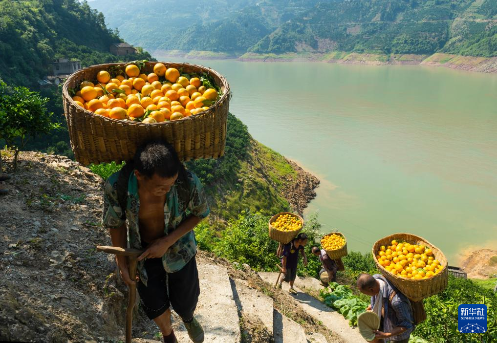 2017年7月27日,湖北省宜昌市秭归县泄滩乡坊家山村果农在转运夏橙。