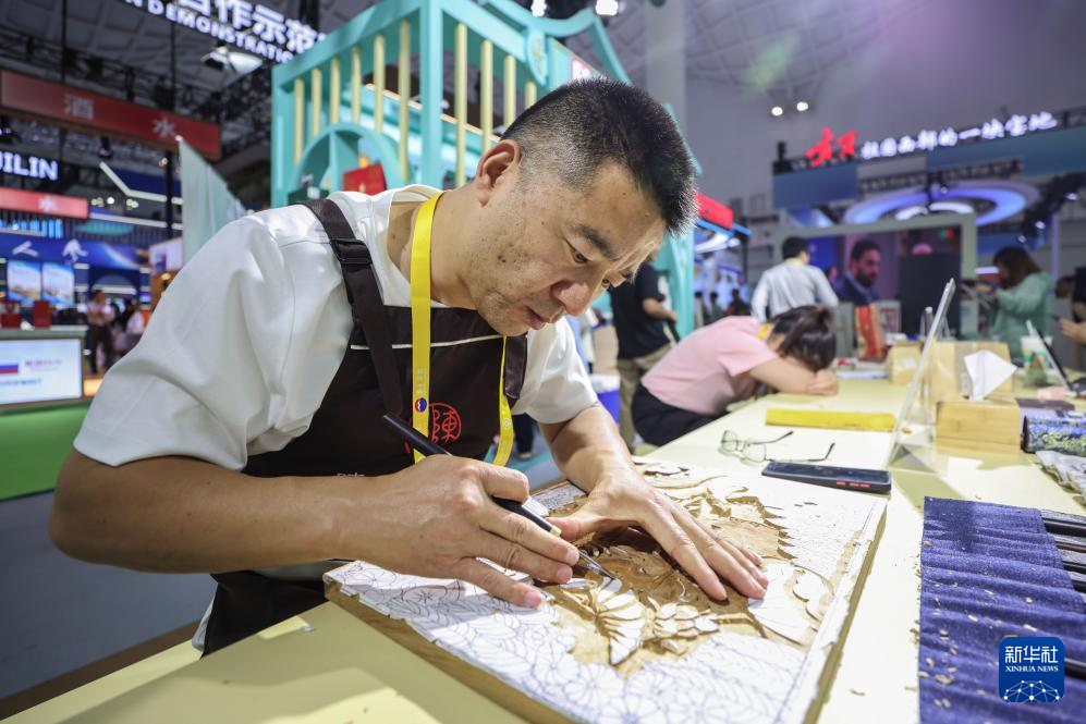 在第五届中国国际消费品博览会上,来自全国各地的非遗产品齐聚一堂,成为展会的一大亮点。从传统手工艺品到特色美食,这些非遗产品不仅展示了中国传统文化的深厚底蕴,还通过创新设计和展示方式,吸引了众多观众的目光,成为国潮消费新风尚。