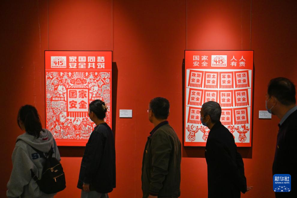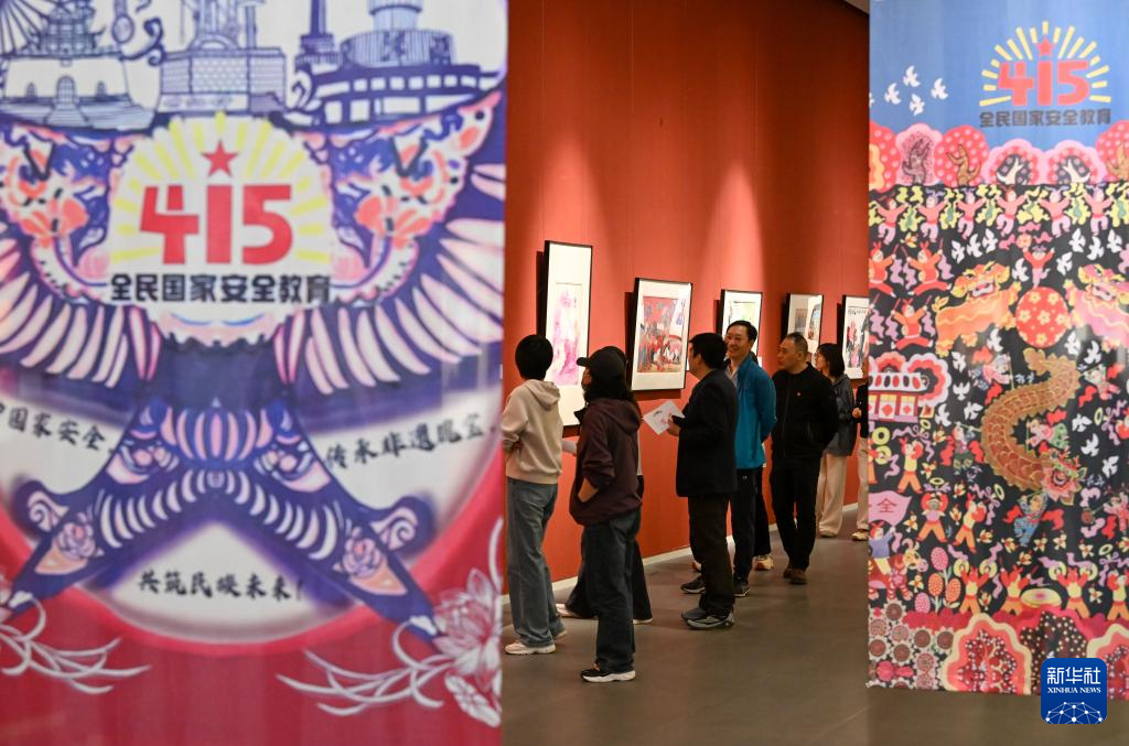 4月15日,观众在天津美术馆参观天津市全民国家安全教育10周年优秀非遗作品展。