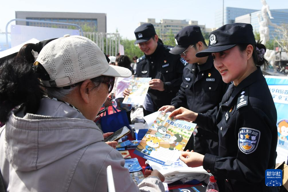 4月15日,在北京市海淀区2025年“4·15”全民国家安全教育日主场活动现场,民警向市民介绍国家安全知识。