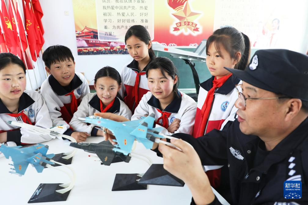 4月15日,在河北省唐山市丰润区姜家营镇杨家铺小学,民警在为学生讲解国防知识。