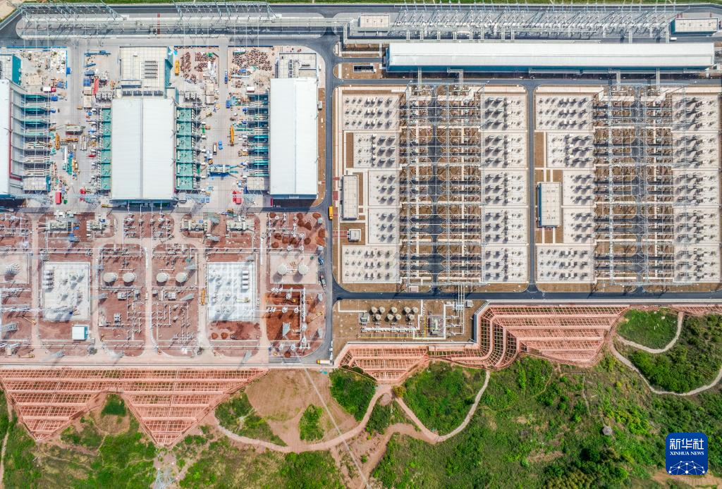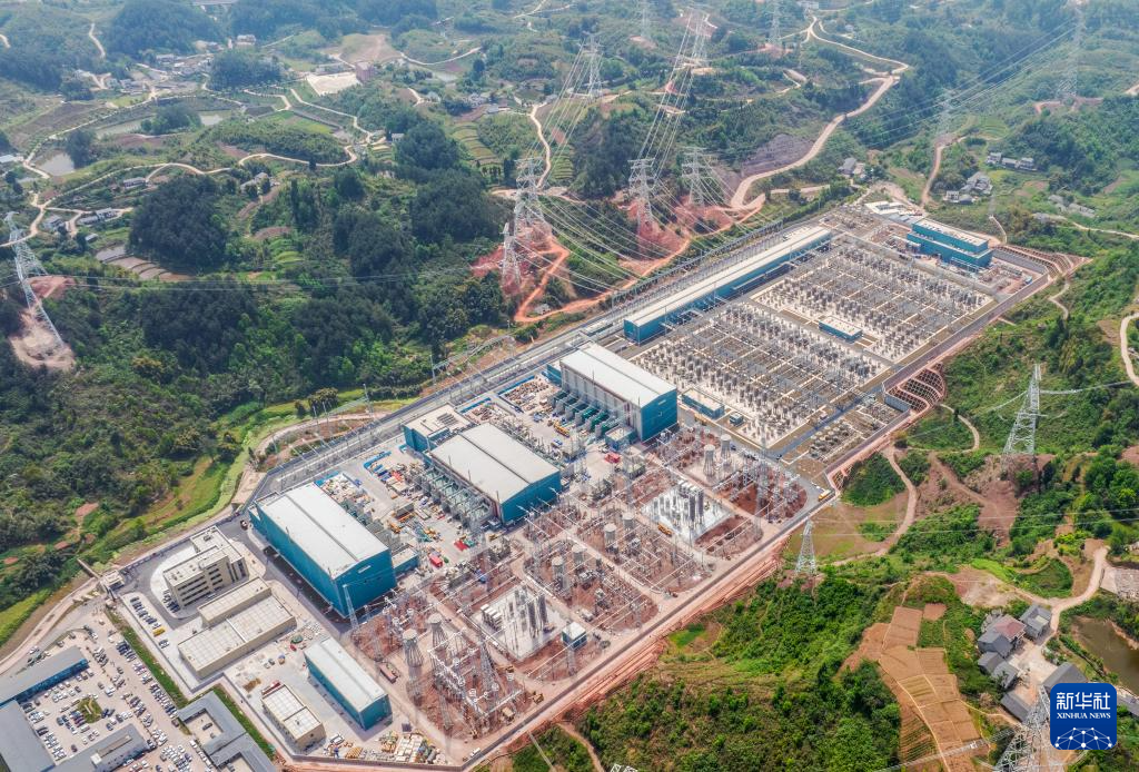 这是4月16日拍摄的建设中的“疆电入渝”特高压工程渝北换流站(无人机照片)。