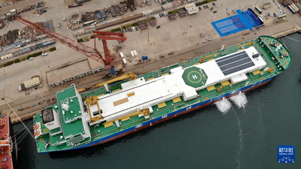 大型养殖工船“国信1号2-1”被命名为“鲁即渔养60617”(4月17日摄)。