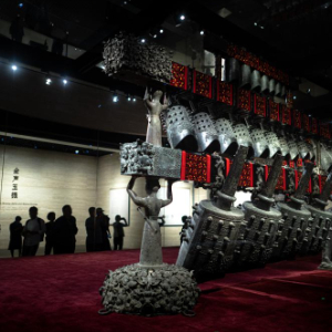 4月17日在湖北省博物馆拍摄的随州曾侯乙编钟。