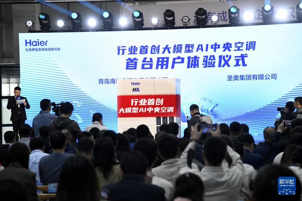 4月17日,海尔首台AI中央空调在投产仪式上交付。