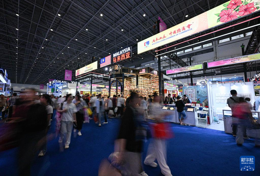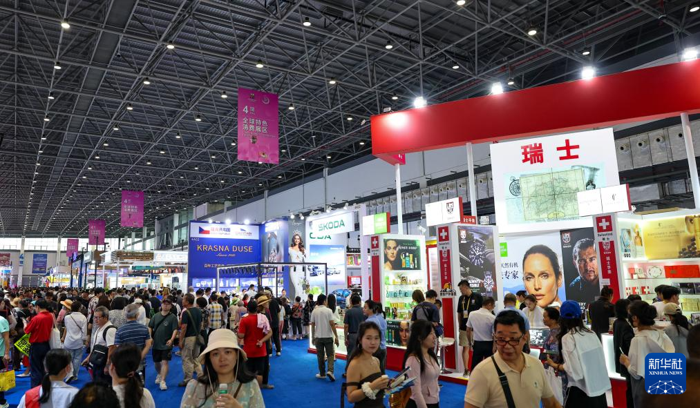 4月17日,第五届消博会全球特色消费展区人流如织。