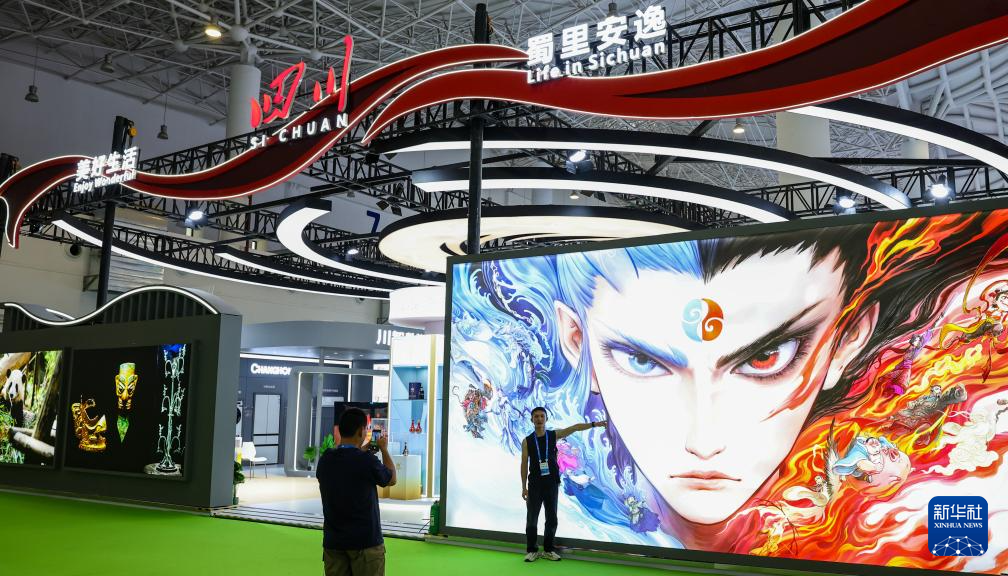 4月18日,观众在第五届消博会国货特色潮品展区留影。