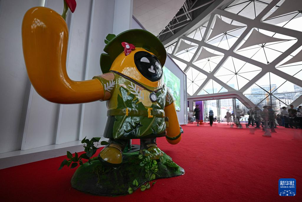 4月18日在第五届消博会主会场拍摄的消博会吉祥物。