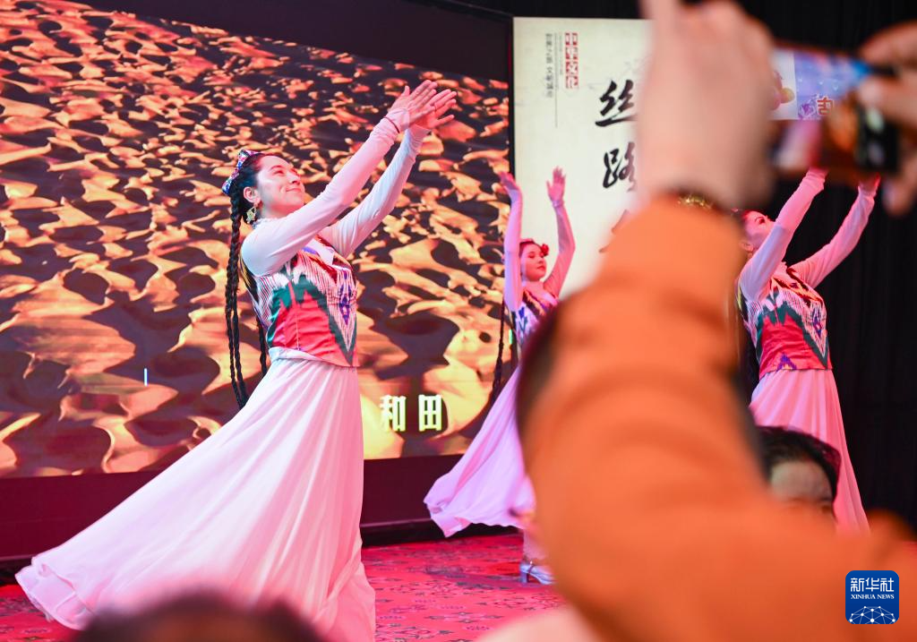 人们在新疆和田市观看歌舞演出(4月15日摄)。