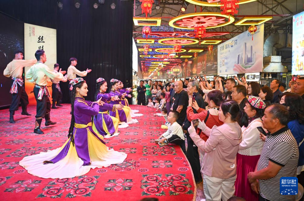 融美食、娱乐、休闲于一体的新疆和田夜市,是深受旅游者喜爱的打卡点。为丰富本地居民和游客的文化生活和旅游体验,和田市文工团常年在夜市举办文艺演出。