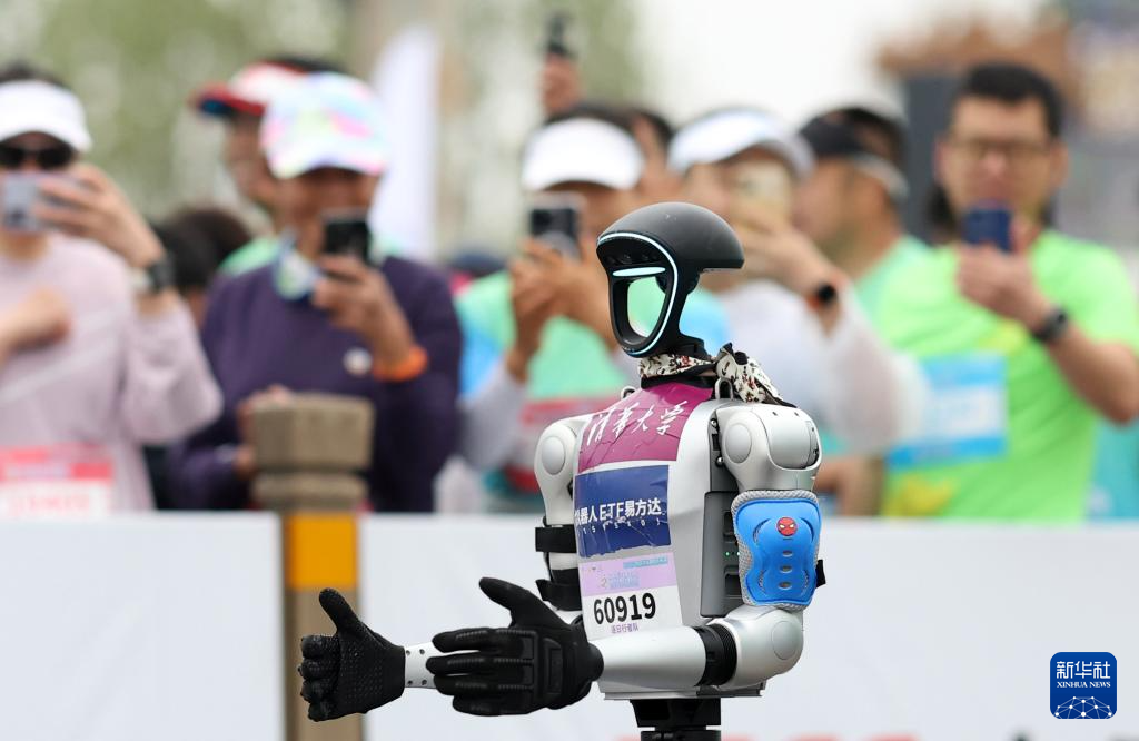 4月19日,天工队选手天工Ultra(中)在比赛起点准备出发。