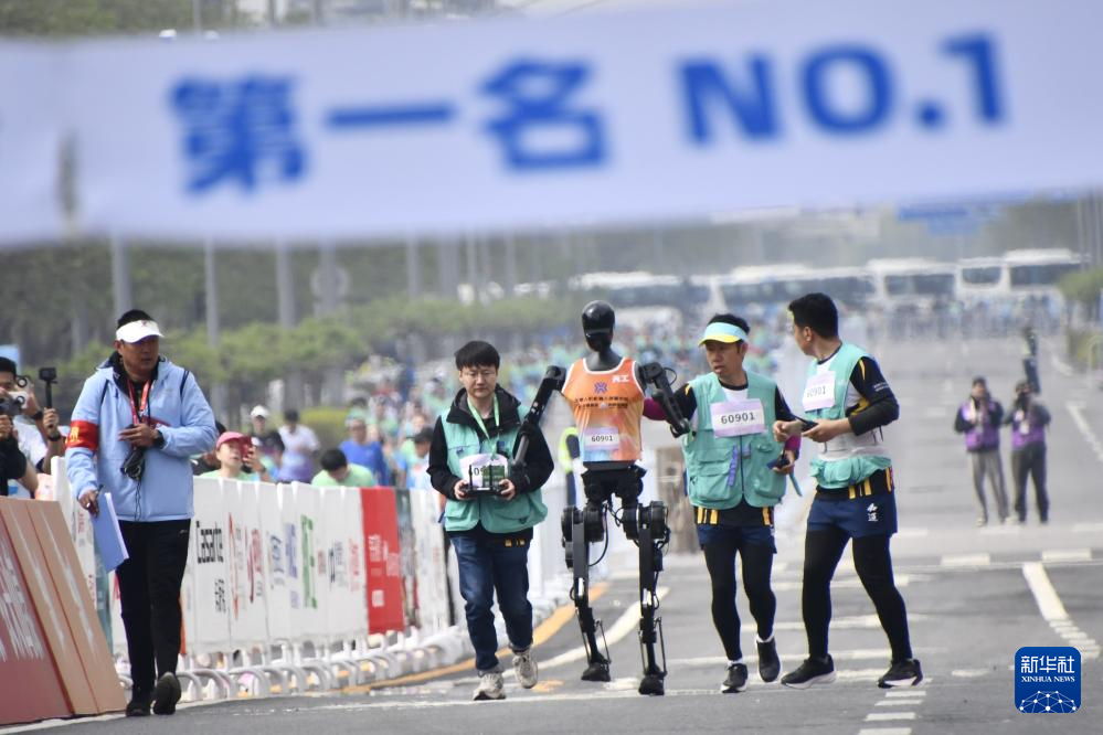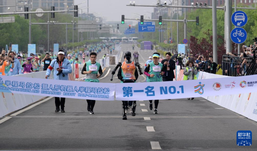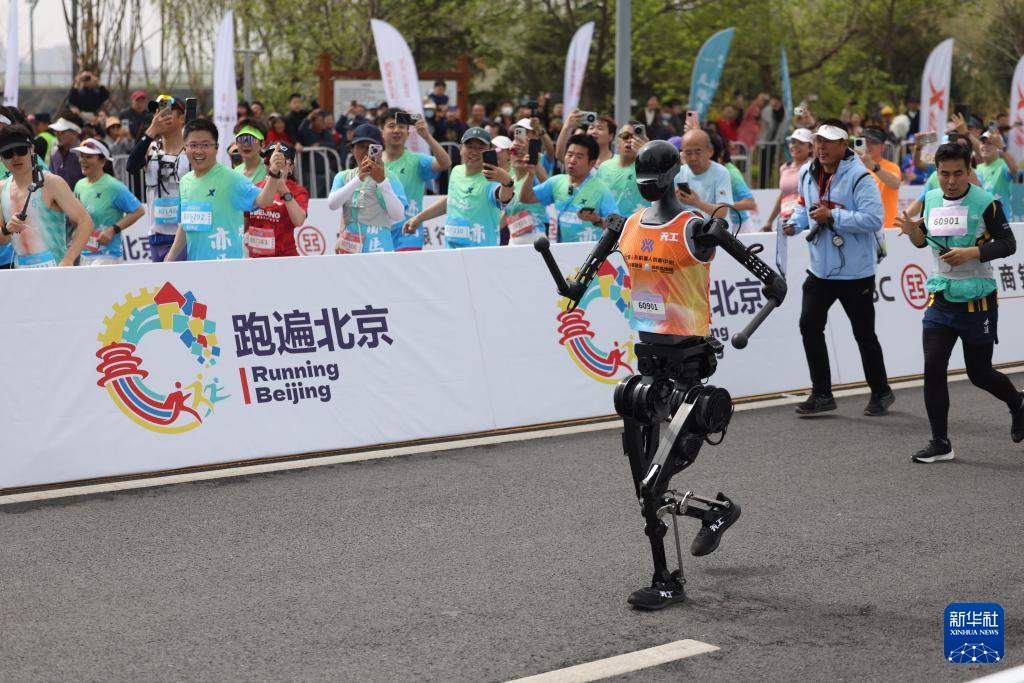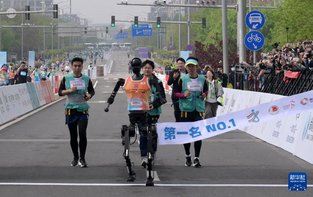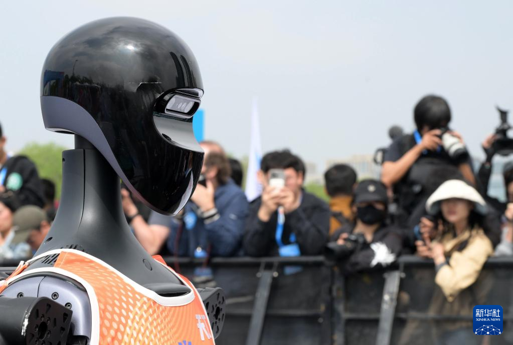 4月19日,天工队选手天工Ultra(左二)在比赛中冲过终点。