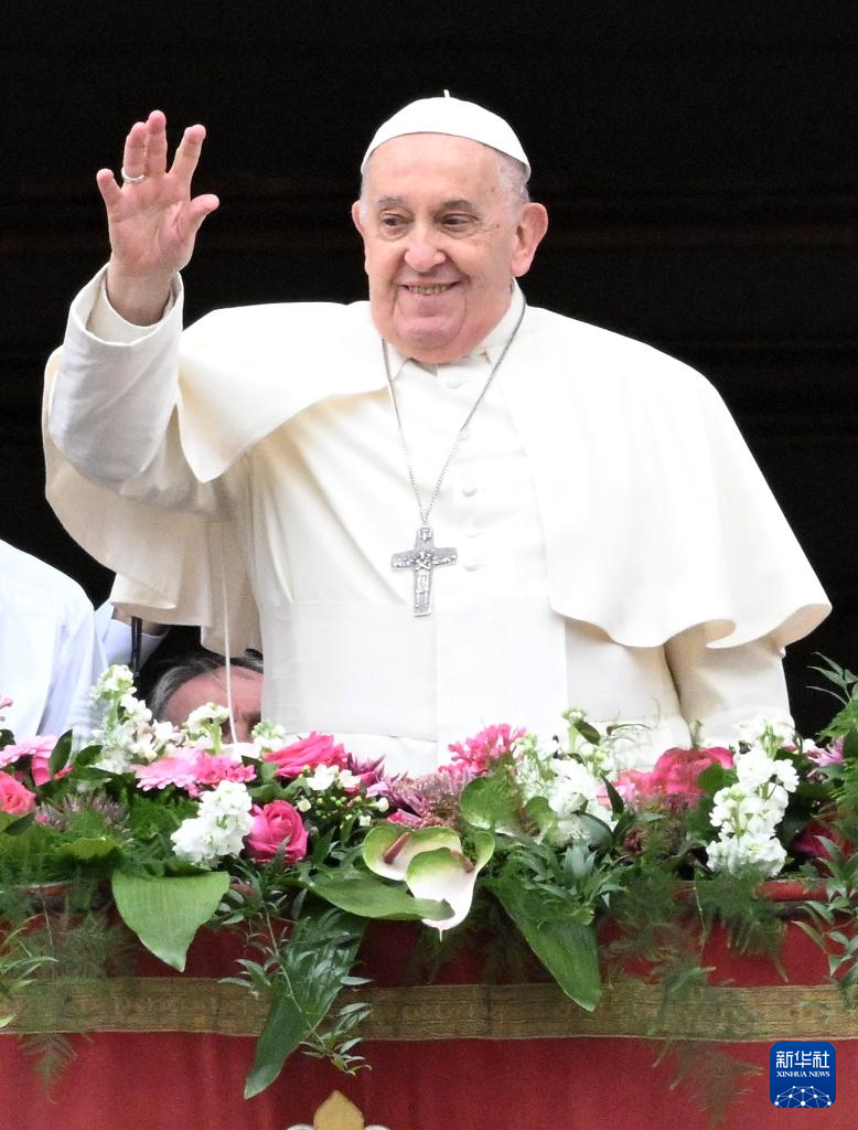 这张拍摄于2024年3月31日的资料照片显示,罗马教皇方济各在梵蒂冈圣彼得广场参加活动时向人群挥手。