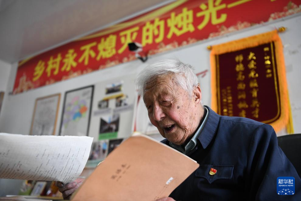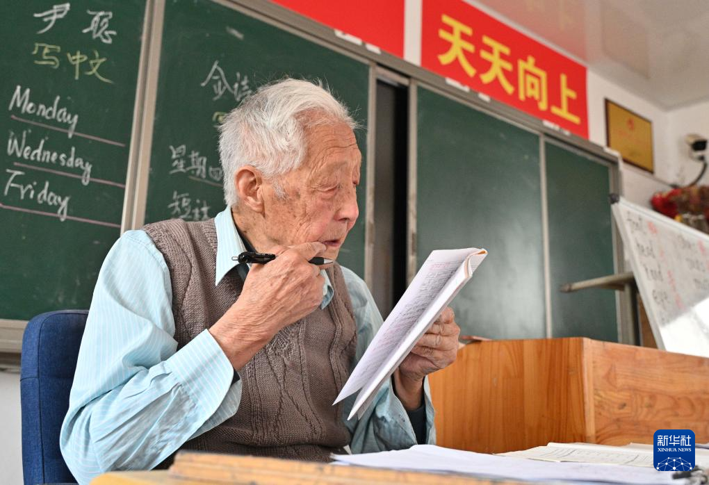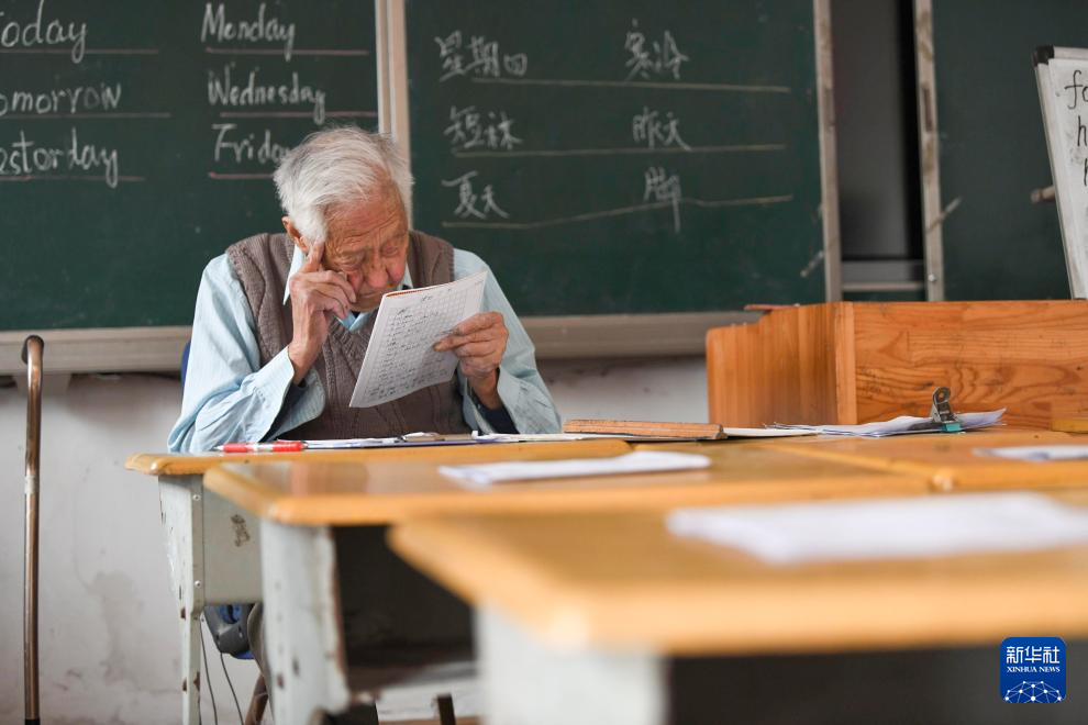 来访时,97岁的叶连平正在卜陈村的一间平房里批改学生们的作业。他时而满意地点头,时而因作业中的错误叹息,作业本上满是他的批注。