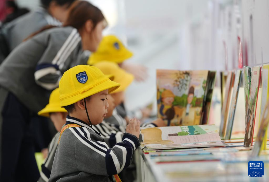 4月23日,在沈阳的时代文仓城市书房,小朋友被图画书吸引。