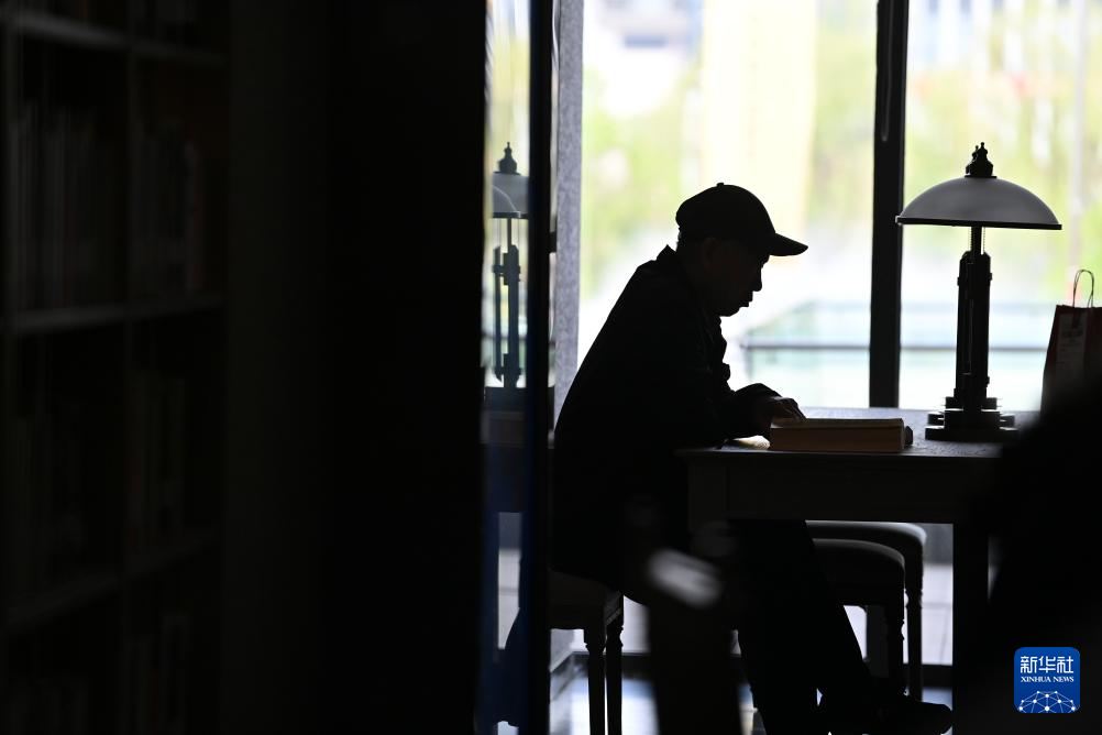 4月23日,一名市民在沈阳的时代文仓城市书房阅读。