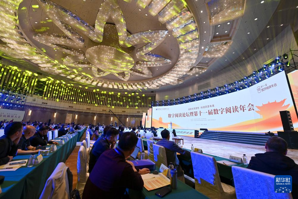 这是4月23日在太原拍摄的第四届全民阅读大会数字阅读论坛暨第十一届数字阅读年会现场。