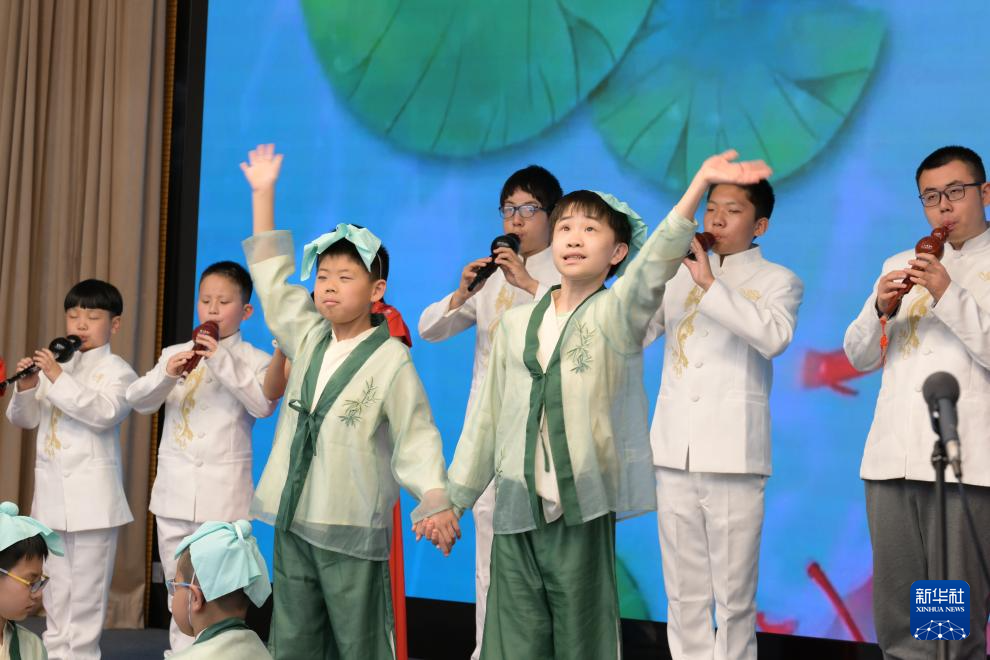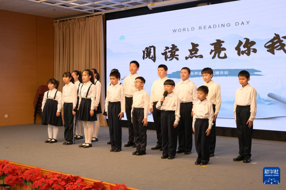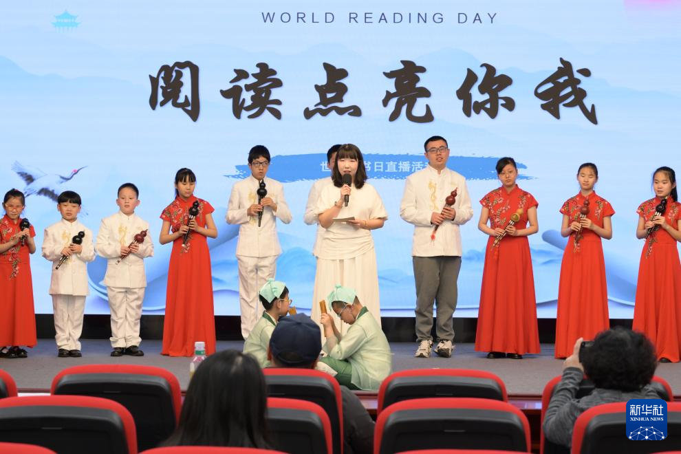 4月23日,在位于北京的中国盲文图书馆举行的“阅读点亮你我”直播活动上,北京市盲人学校的孩子们表演节目。